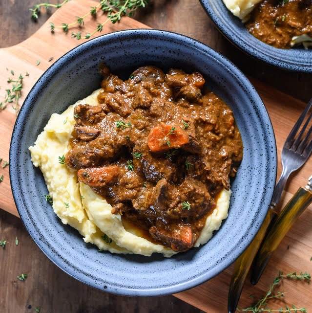 Served over mashed potatoes or egg noodles.
