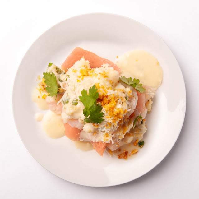 Ingredients: Sauce (Milk, Cream, Feta Cheese, Cheese Powder, Flour, Sharp Cheddar, Smoked Cheddar) Topping (Flour, Buttermilk, Butter, Egg, Baking Powder, Sugar, Salt, Cheddar Cheese)